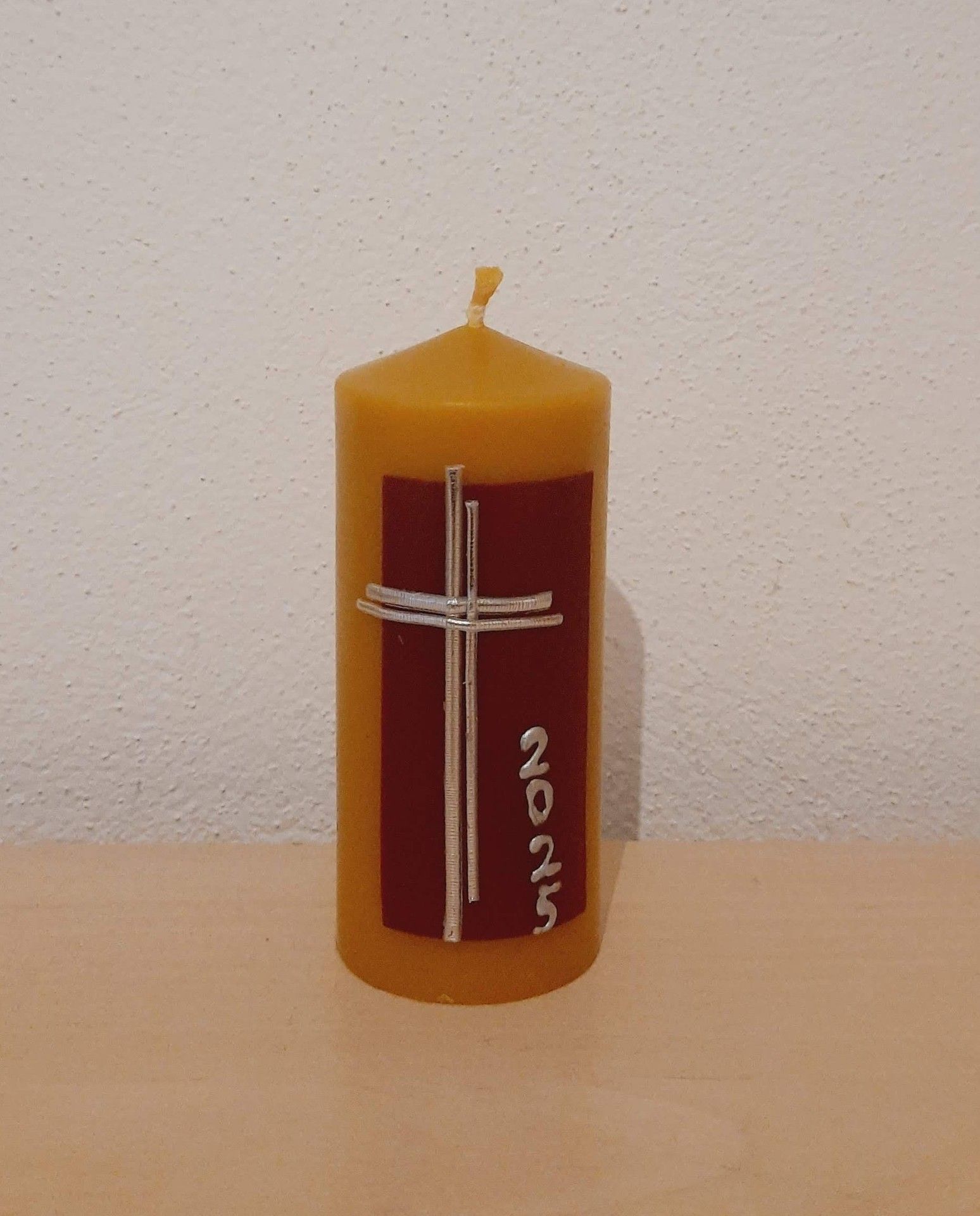 Hromničná sviečka hrubá liata s bordovým krížom